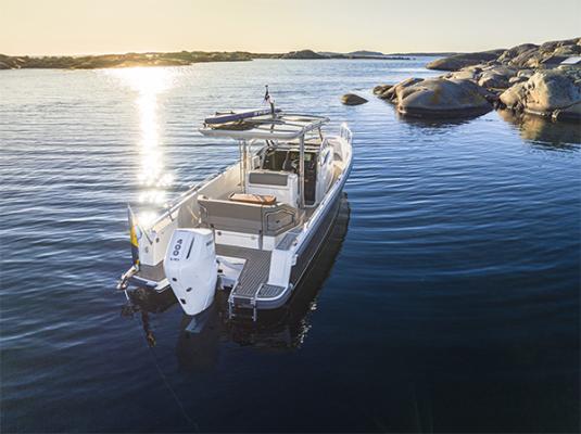 The Nimbus T9 is a day boat that caters for all types of activities including water sports and days out on the water for up to 4 people. The versatile and sleek design of the Nimbus T9 provides performance and comfort with a low planning threshold and a cruising speed of between 20-35 knots, with a maximum speed of 40 knots.